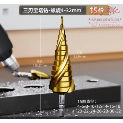 首页 > 建筑建材 > 五金附件 > 绿林(GREENER)038066A 宝塔钻头多功能电钻开孔器钻孔打孔阶梯钻头4-32mm SKU:yzwhyp902176