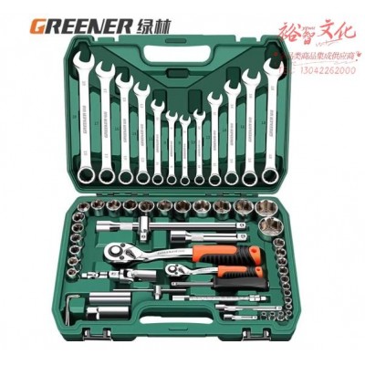 绿林(GREENER)专业汽修工具套装大小飞棘轮套装工具箱梅花开口两用扳手全套61件 (zhyghf_93500113)SKU:yzwhyp902188