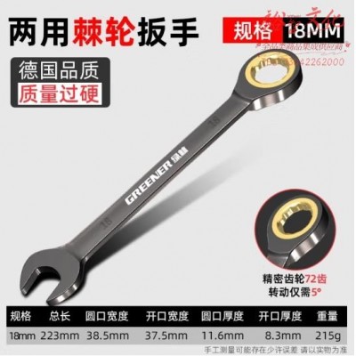 绿林(GREENER)双向快速棘轮扳手工业级18mm小开口两用扳手自动五金工具套装 (zhyghf_93500453)SKU:yzwhyp902203