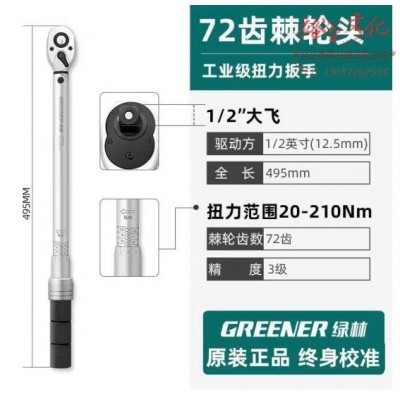 绿林(GREENER)机械式预置扭力扳手 可调节双向棘轮扳手72齿高精度套筒扳手 (zhyghf_93500506)SKU:yzwhyp902214
