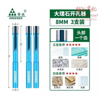 绿林(GREENER)大理石开孔器瓷砖花岗岩打孔钻头专用8mm(3支) (zhyghf_93500801)SKU:yzwhyp902478