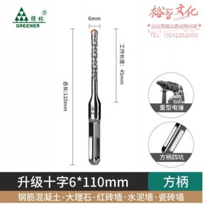 绿林(GREENER)冲击钻头十字打孔混凝土穿墙(老师傅推荐)6*110方柄 (zhyghf_93500833)SKU:yzwhyp902491