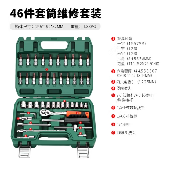 首页 > 建筑建材 > 五金附件 > 绿林(GREENER)汽修工具套装套筒扳手工具箱套装五金棘轮快速扳手修车汽车修理五金工具 46件专业汽修工具套装 (zhyghf_93500864)SKU:yzwhyp902503