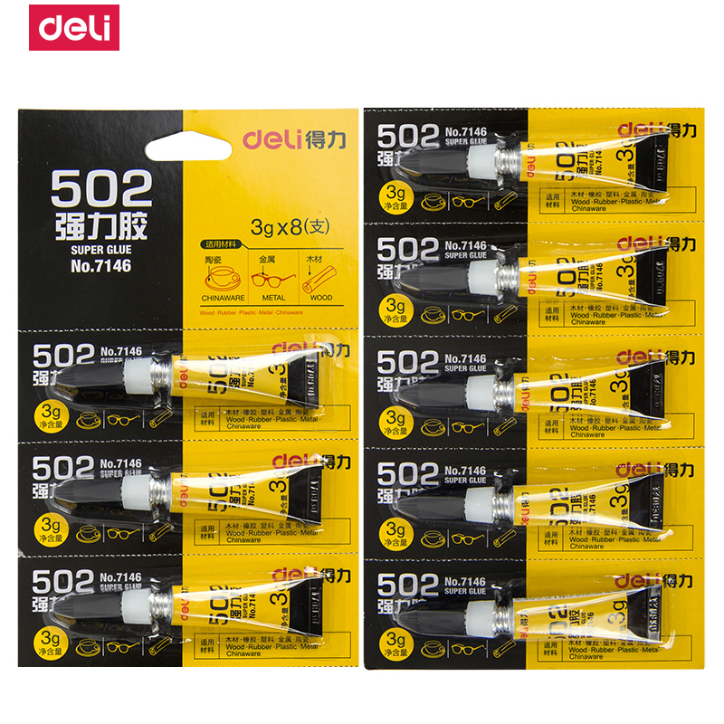 得力(deli) 7146 502强力胶水 快速粘合无色胶水 3g/支 8支装(zhyghf_801300162)SKU:yzwhyp902626