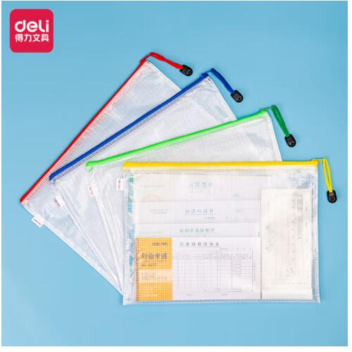 得力(deli)10只A4透明文件袋网格拉链袋资料袋 试卷票据收纳 文件保护 单色随机5654(zhyghf_802700434)SKU:yzwhyp902635