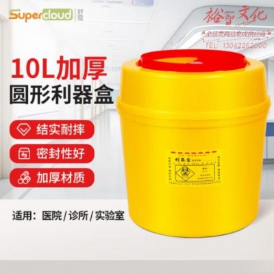 舒蔻(Supercloud) 圆形利器盒卫生所实验室医疗用锐器盒黄色废物垃圾桶 10L (zhyghf_221723013)SKU:yzwhyp902676
