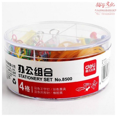 得力(deli)8500 办公组合套装 图钉/回形针/票夹/橡皮筋四合一 5组装(zhyghf_803600039)SKU:yzwhyp902991