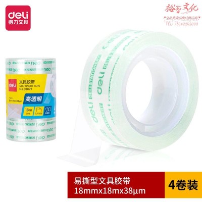 得力(deli)易撕透明高粘文具胶带/小胶带 18mm*18m 4卷/筒30079(zhyghf_803700048)SKU:yzwhyp902994