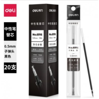 得力6916 中性笔芯0.5mm子弹头(黑)(支)