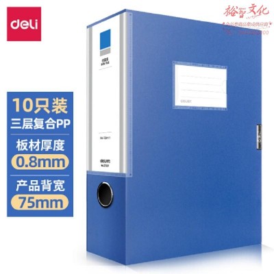 得力(deli)10只75mmA4加厚PP粘扣文件盒档案盒资料盒凭证文件收纳盒27037蓝色(zhyghf_800200083)SKU:yzwhyp903046