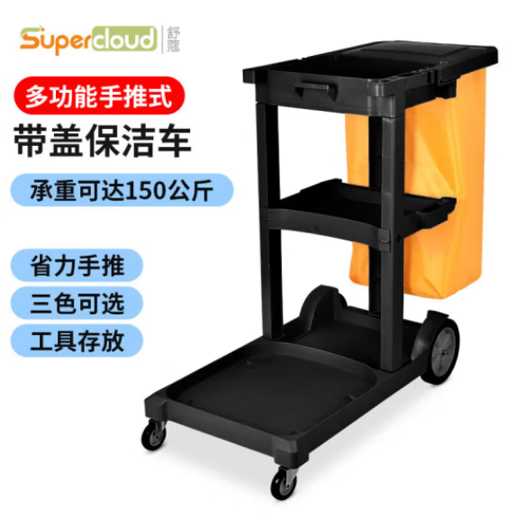 首页 > 用具 > 其他厨房用具 > 舒蔻(Supercloud)黑色有盖 保洁车 多功能清洁车 物业酒店餐厅清洁工具布草车多层手推车 (zhyghf_221723067)SKU:yzwhyp903072