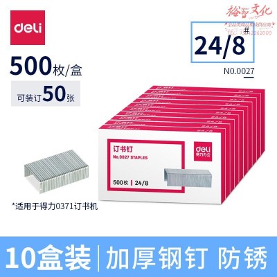 得力0027加厚订书钉24/8 500枚一盒 10盒装 (zhyghf_801000084)SKU:yzwhyp903099