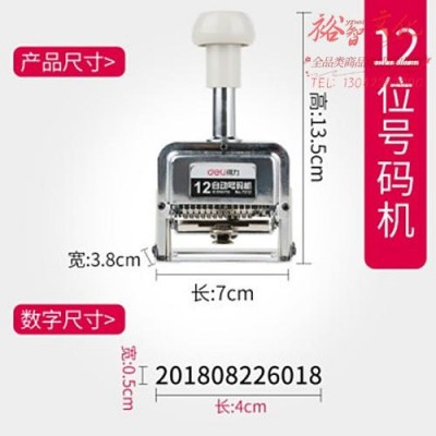 得力(deli)自动号码机打码机编号打号器页码机6位日期可调数字印章 12位号码机 7512(zhyghf_804000891)SKU:yzwhyp903247