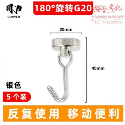 首页 > 办公用品 > 文具 > 国为(COUVEZI) 【5个装】强力磁铁挂钩免打孔无痕宿舍家用吸铁石挂钩磁力旋转磁吸挂钩办公桌 G20可旋转银色(5个装) (zhyghf_221712525)SKU:yzwhyp903337
