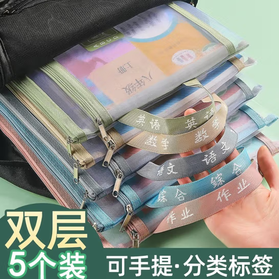 首页 > 办公用品 > 文具 > 国为(COUVEZI)【带手提】双层a4科目分类文件袋学科分类袋学生试卷收纳袋分类文具作业学科收纳袋 【双层网纱】语数英综作5个装 (zhyghf_221712517)SKU:yzwhyp903345