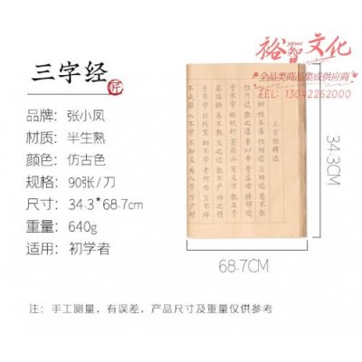 首页 > 办公用品 > 文具 > 张小凤 宣纸钢笔式毛笔毛笔字帖小楷初学者入门临摹软笔手抄本练习纸套装描红宣纸半熟宣 三字经仿古色90张 (zhyghf_23096742)SKU:yzwhyp903415