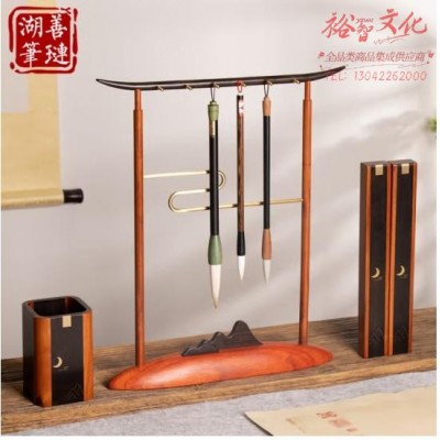 首页 > 办公用品 > 文具 > 善琏湖笔 毛笔架套装毛笔挂架紫光檀花梨木镇尺嵌铜笔筒笔搁套装镇纸非洲酸枝文房四宝用品高档送礼 花梨木笔挂套装【四件套】 (zhyghf_23096768)SKU:yzwhyp903443