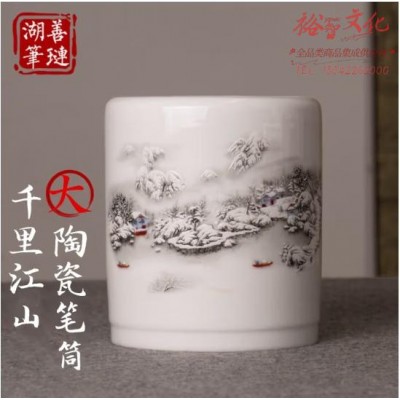 善琏湖笔 瓷器笔筒白瓷仿古山水办公室书房桌面陶瓷笔筒创意时尚礼品毛笔笔筒 山水瓷笔筒 (zhyghf_23096818)SKU:yzwhyp903450