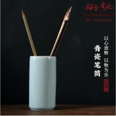 善琏湖笔 汝窑开片釉笔筒豆青 中式中国风创意办公礼品文房四宝笔搁笔托毛笔架陶瓷器 青瓷笔筒 (zhyghf_23096815)SKU:yzwhyp903453