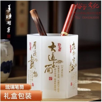 善琏湖笔 琉璃笔筒 中式创意办公室摆件书房用具送朋友老师高档节日礼物 厚德载物 (zhyghf_23096814)SKU:yzwhyp903454