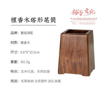 善琏湖笔 木质笔筒 毛笔实木笔筒文房四宝家具摆件文房配件 礼品工艺品 檀香木塔形笔筒 (zhyghf_23096810)SKU:yzwhyp903458
