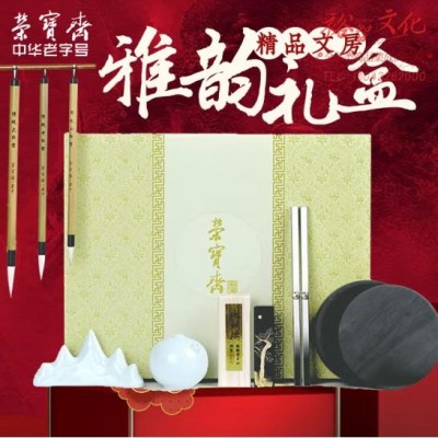 荣宝斋 文房四宝毛笔套装 宣纸砚台镇尺自用送礼文具笔墨纸砚礼盒 雅韵-精品礼盒装 (zhyghf_23096947)SKU:yzwhyp903513