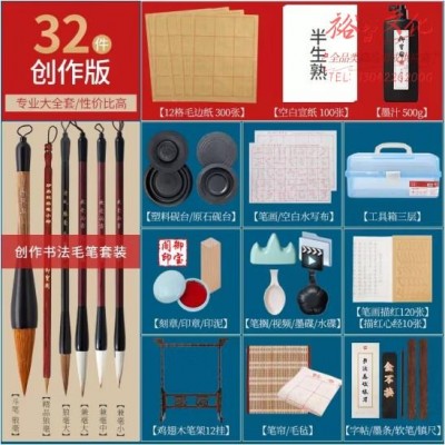 首页 > 办公用品 > 文具 > 御宝阁 文房四宝毛笔套装初学者入门小学生书法宝笔墨纸砚毛毡砚台带盖字帖水写布笔架墨碟毛笔练字纸 创作32件套【升级收纳盒 笔架 专业毛笔 刻章】 (zhyghf_23097131)SKU:yzwhyp903615