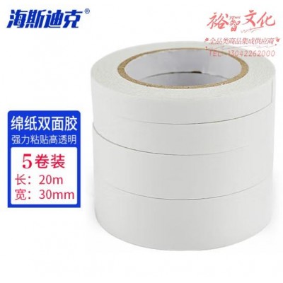 海斯迪克 HK-5081 强力双面胶 棉纸易撕胶带 宽30mm*20米 5卷(zhyghf_221717083)SKU:yzwhyp903710