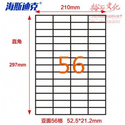 首页 > 办公用品 > 文具 > 海斯迪克 HKLY-97 亚光a4不干胶 库房货位打印纸 标签纸 56格52.5*21.2mm 80张直角 (zhyghf_221717312)SKU:yzwhyp903718