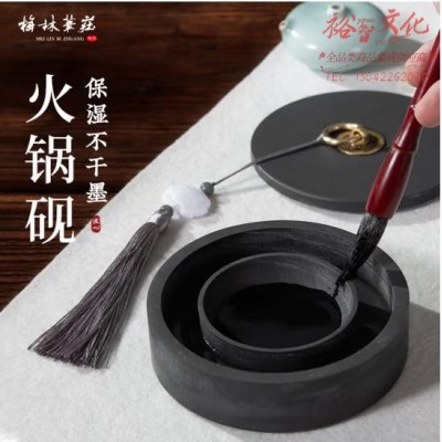 梅林笔庄 砚台 书法初学者学生专用双圈保湿原石火锅砚台文房四宝毛笔墨汁带盖墨池 4寸礼盒歙砚 (zhyghf_23097335)SKU:yzwhyp903752