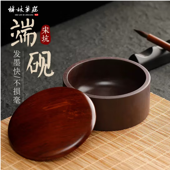 梅林笔庄原石砚台带盖文房四宝书法专用初学者防干墨盛墨装水多功能学生墨碟宋坑端砚3寸 (zhyghf_23097334)SKU:yzwhyp903753
