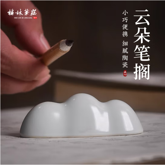 梅林笔庄陶瓷笔搁 毛笔架笔托镇纸文房四宝书法国画用品学生简约书房桌面摆件汝窑云朵笔山白色 (zhyghf_23097329)SKU:yzwhyp903758