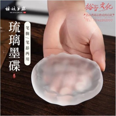 梅林笔庄J-620-1冰霜墨碟 盛墨毛笔架笔搁水碟多功能砚台学生初学者书法练字陶瓷文房四宝用品 (zhyghf_23097366)SKU:yzwhyp903774
