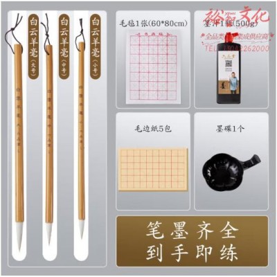 六品堂毛笔羊毫大白云中楷小楷学生书法国画专用初学者入门墨汁墨碟毛边纸文房四宝毛笔套装 (zhyghf_23096486)SKU:yzwhyp903782