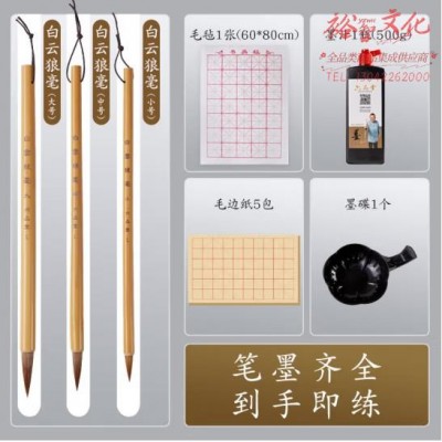 六品堂毛笔狼毫大白云中楷小楷学生书法国画专用初学者入门墨汁墨碟毛边纸文房四宝毛笔套装 (zhyghf_23096485)SKU:yzwhyp903783