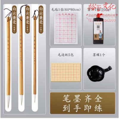 六品堂毛笔兼毫大白云中楷小楷学生书法国画专用初学者入门墨汁墨碟毛边纸文房四宝毛笔套装 (zhyghf_23096484)SKU:yzwhyp903784