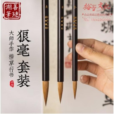 善琏湖笔 狼毫毛笔套装专业书法 大中小楷毛笔高档精品 文房四宝 温故大中小号狼毫毛笔三支套装 (zhyghf_23096561)SKU:yzwhyp903821