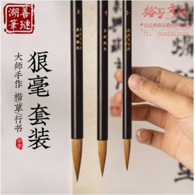 善琏湖笔 狼毫毛笔套装专业书法 大中小楷毛笔高档精品 文房四宝 温故大中小号狼毫毛笔三支套装 (zhyghf_23096602)SKU:yzwhyp903837