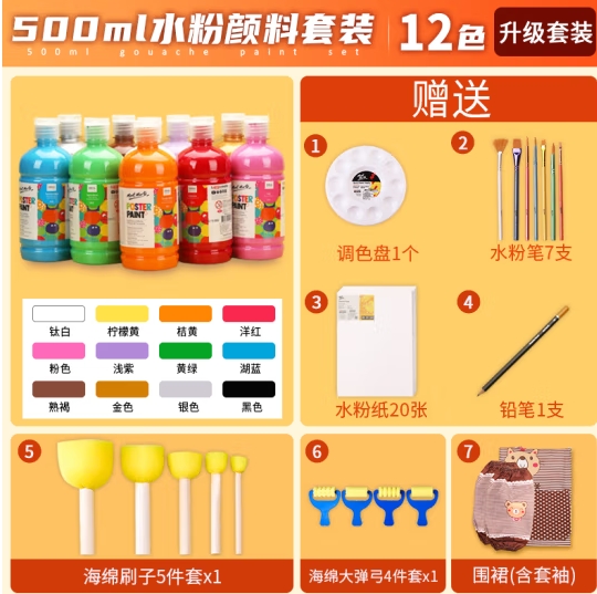 首页 > 办公用品 > 文具 > 蒙玛特(Mont Marte)水粉颜料12色 大容量大瓶500ml水粉绘画练习美术黑板报材料白色颜料套装儿童水粉 (zhyghf_21101204)SKU:yzwhyp903976