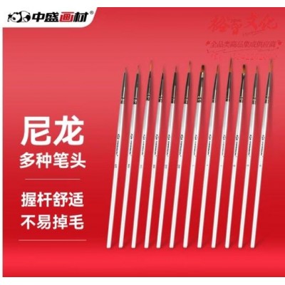 中盛画材 12支勾线画笔套装 尼龙毛水粉油画丙烯国画工笔颜料专用笔 多笔头排笔刷 (zhyghf_21101276)SKU:yzwhyp904019