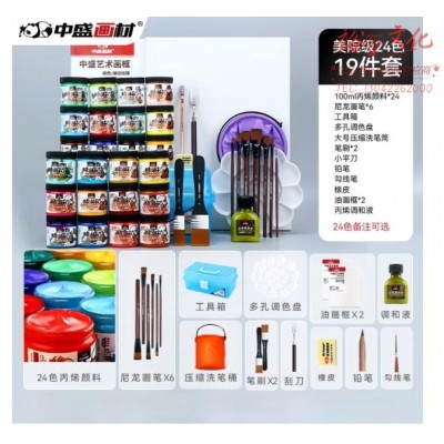 首页 > 办公用品 > 文具 > 中盛画材(transon)100ml丙烯颜料套装 手绘墙绘套装 儿童初学者专用 常用24色19件套 (zhyghf_21101325)SKU:yzwhyp904033