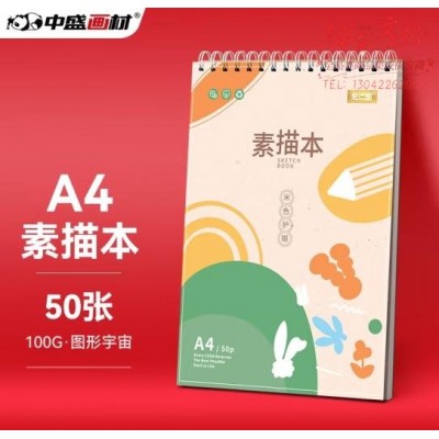 中盛画材(transon)50页A4素描本速写本 成人空白手绘厚绘画本彩铅专用美术画画本素描纸本 (zhyghf_21101318)SKU:yzwhyp904038