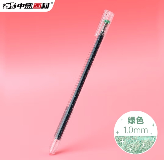 中盛画材 绿色闪光啫喱笔中性笔荧光笔记号笔珠光彩色绘画标记笔亮晶晶水笔单支套装金属色学生 (zhyghf_21101369)SKU:yzwhyp904051