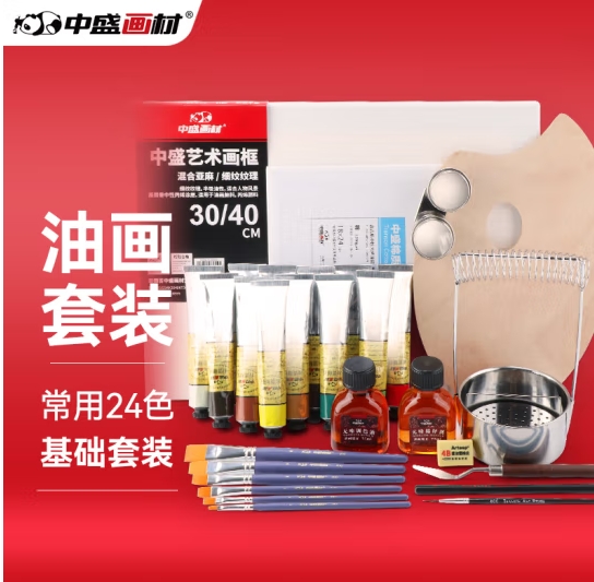 首页 > 办公用品 > 文具 > 中盛画材(transon)油画颜料油画套装油画布材料画画套装工具颜料美术染料油画用品美术绘画写生24色17件套 (zhyghf_21101424)SKU:yzwhyp904073