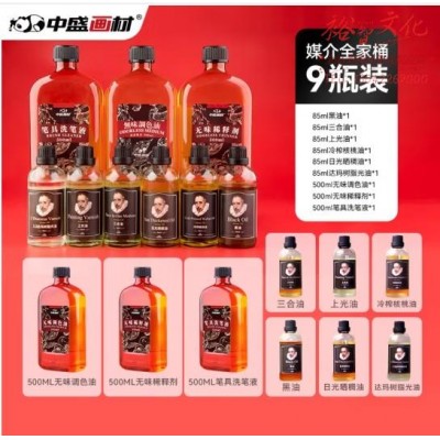 中盛画材 油画颜料媒介稀释剂松节油调色油上光油洗笔液三合油日光油全家桶套装 (zhyghf_21101490)SKU:yzwhyp904104