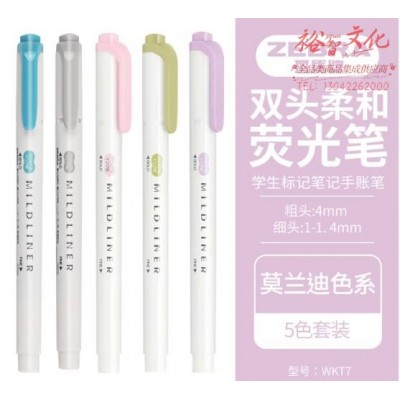斑马牌 (ZEBRA)荧光笔 WKT7双头柔和荧光笔 学生标记笔记手账笔 莫兰迪色系 5色套装 (zhyghf_23098962)SKU:yzwhyp904145