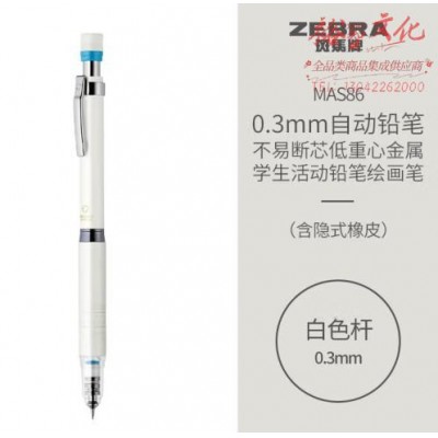 首页 > 办公用品 > 文具 > 斑马牌 (ZEBRA)0.3mm自动铅笔 不易断芯低重心金属学生活动铅笔绘画笔(含隐式橡皮)MAS86 白色杆 (zhyghf_23099144)SKU:yzwhyp904172