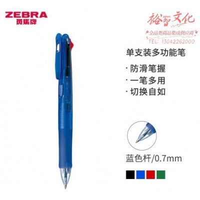 斑马牌 (ZEBRA)按动多色多功能圆珠笔 0.7mm子弹头四色原子笔学生 B4A3 蓝色杆 (zhyghf_23099180)SKU:yzwhyp904186