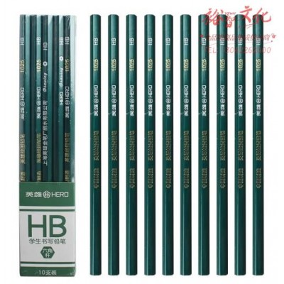英雄(HERO)铅笔 红木六角杆闪光绿两头切光学生考试素描绘图铅笔 10支装 1025-HB (zhyghf_23099318)SKU:yzwhyp904218