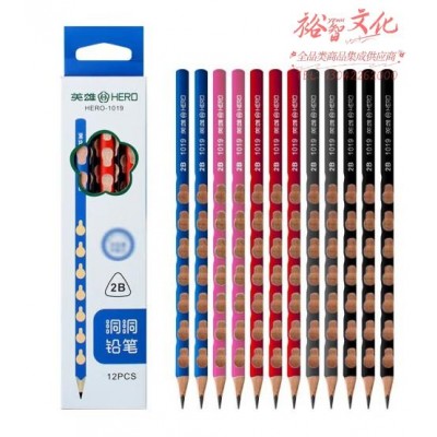 英雄(HERO)铅笔 软化木三角杆洞洞沾头削尖学生考试素描绘图铅笔 12支装 1019-2B (zhyghf_23099312)SKU:yzwhyp904224